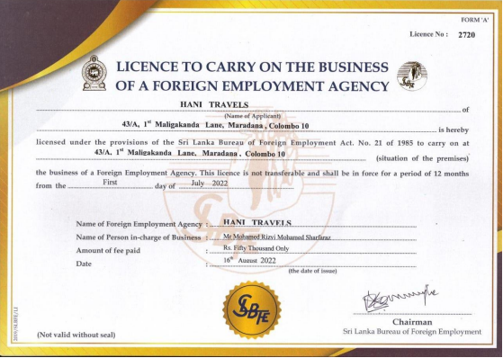Welcome to Hani Travels Agency, a leading and licensed (License No:2720) recruitment agency based in Colombo, Sri Lanka. We have been in the industry for over 10 years and specialize in providing highly skilled and qualified staff for companies in the Middle East and Europe.